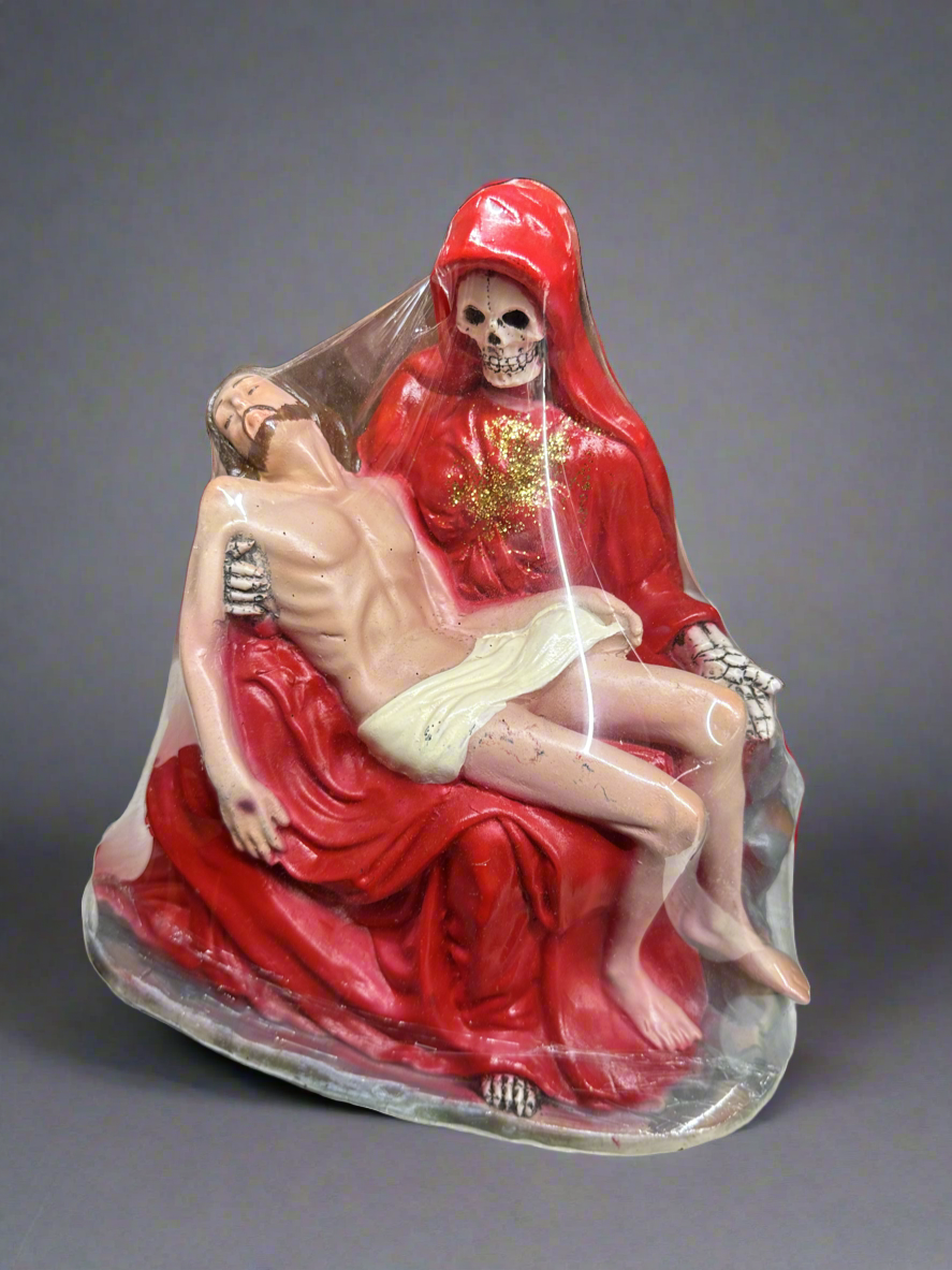 This 10 inch Santa Muerte statue with Jesus is hand-crafted and exquisitely detailed. Made from high-quality materials, it will make the perfect addition to any altar or display. With its spiritual symbolism, this statue represents protection and guidance in life's journey.