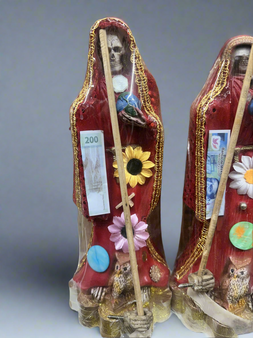 This 12 inch Santa Muerte Cloth is crafted with high-quality, durable fabric to bring protection, prosperity, and good luck into your home. Its intricate design and vibrant colors add a touch of beauty while honoring the Santa Muerte tradition. Perfect for altars and sacred spaces.